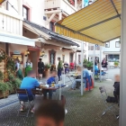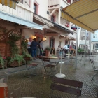 Daß wir nicht nur einen 4er-Tisch bekamen, sondern auch noch einen perfekten 4er-Tisch erfuhren wir dann anschließend. Ein, für unser Verständnis und unsere Gegend, veritabler Wolkenbruch, ließ an den meisten Tischen durchaus etwas Leben einkehren.