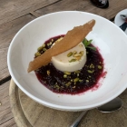 Ein Salat wie er sein soll, mit Honig Senf Dressing gut abgeschmeckt. Ob der nun auf einem "Teller" aus Filoteig serviert werden muss, dass soll jeder selber entscheiden. Entschieden lecker waren die mit grünem Pfeffer und Balsamico marinierten Erdbeeren, die auf dem Salat lagen. In einem Anfall von Lust auf Zucker bestellte einer der Herren (nicht ich!) noch eine Panna Cotta.