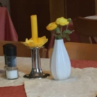 Ein großes altes Gasthaus mit verschiedenen Räumlichkeiten. Wenn man hereinkommt befindet sich linkerhand die Tür zum Gastraum. Es gibt einen Kachelofen mit dem Stammtisch davor. Eine Eckbank mit Holzverkleidung und davor Tische und Stühle. Es liegen einige Sitzkissen aus. Krüge und Bilder, zum größten Teil von Jubiläen von langjährigen Familienbetrieb zieren den Gastraum . Die Tische sind eingedeckt mit roten Tisch decken und weißen Mitteldecken . Darauf befinden sich künstliche Blumen, Bierdeckel, Salz- Pfefferstreuer, eine gelbe Stabkerze, gelbe Servietten und das Besteck . Es hängt sogar noch ein Bild von Franz-Josef-Strauß an der Wand. Wir kamen uns vor, wie in die Kindheit zurückversetzt.