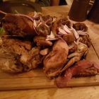 Die Platte mit Kassler, Zunge, Haxe, Wachteln, gebratenen Würstchen, Beffis, Wildbraten und Hähnchenkeulen belegt, war recht schnell alle.