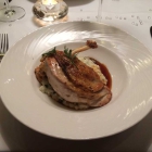Der Kabeljau meiner Frau war hervorragend, auch hier durfte ich naschen, gerade beim pochieren wird dieser Fisch richtig schmackhaft. In Kombination mit Senfschaum, gebratenen Kräuterseitlingen, Puy Linsen und kleinen Kartoffeln ein extrem gutes Kabeljaugericht. Ich hatte mich für eine Perlhuhnbrust entschieden. Auf der Haut knusprig gebraten, war sie gefüllt mit einer Farce aus Ziegenkäse, getrockneten Tomaten und Thymian. Perfekt gegart, saftig, und durch die Farce im Geschmack sehr gut ergänzt. Dazu ein klassisches Risotto, auch hier perfekt zubereitet, genau al dente, der Reis mit einem Rest von Biss. Lecker!