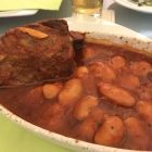 und, last but not least, mein weichgeschmortes Lamm mit dicken Bohnen (16,90€) in seiner zwar nicht aufregenden, aber soulfoodigen Tomatensauce, die sich angenehm an die Magenwände schmiegte. Mit einem Satz: Bis auf die Sache mit der Gambakacke waren wir alle sehr zufrieden.