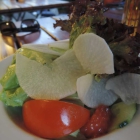 Ich gebe zu, dass ich ohne Hilfe meiner Begleitung, die schon wieder zum saftigen Schweinerückensteak mit gebratenem Gemüse griff, dieses Monster von einem Pfannengericht nicht geschafft hätte. Allein die Käsefüllung war derart mächtig und sättigend, dass es eigentlich von Normalessern kaum zu schaffen war. Auch diesmal gab ich Kroketten den Vorzug. Zusammen mit einer leichten Bratenjus (ja ich bin Saucenjunkie!) rutschten die dann auch hervorragend. Auch hier war natürlich wieder ein Salätchen vorweg am Start. Das Ganze hatte natürlich auch seinen Preis. 9,80 Euro erschienen mir für das Gebotene jedoch äußerst preisgünstig. Gerade wenn man bedenkt, dass hier Fleisch aus der eigenen Zucht auf den Teller kommt.