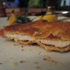 Diesmal wollte ich es wirklich wissen. Nach der Einstiegs-Schnitzelei vom Erstbesuch sollte es nun die Königsdisziplin sein, das Cordon Bleu. Es hatte die Masse von zwei Schnitzeln, war im Innenraum überaus großzügig mit Emmentaler und Kochschinken ausgestattet und hatte die gleiche Knusperpanade wie der Schweinerückenfetzen Wiener Art. Da lag also ein schätzungsweise 300 bis 350 Gramm schweres, kross in Butterschmalz ausgebackenes „Blaues Band“ auf meinem Teller und wollte verzehrt werden. Vor meinem geistigen Auge sah ich den Daueresser aus der Rittersport-Metropole, wie er sich über diese „winzige“ Portion bei der Bedienung beschwerte und mit nacktem Wurstfinger auf mich zeigte, wie ich an diesem Fleischberg mein Carnivoren-Waterloo einleitete. Kalter Schweiß brach mir aus und ich machte mich ans Werk.