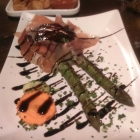 Und von der Tageskarte Queso de Cabra a la Plancha con Esparragos verdesy Jamon Serrano ( Gegrillter Ziegenkäse mit grünem Spargel und Serranoschinken ) - € 7,90