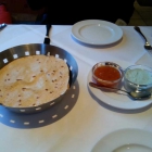 Wir wählten als kleinen Start-Snack. 2 Stk. Papadam (Linsenmehl-Fladen, hauchdünn, in einer heißen Pfanne ausgebacken), sehr knusprig, mit  selbstgemachten Sweet-Chilli-  & Minz-Dip (2,00 €).