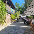 Allein hier in der Halle haben ca. 160 Leute Platz, noch einmal so viele im großzügigen Außenbereich. Also immerhin 300 Leute welche auf einmal ihr Mittagessen haben wollen. Um diese Massen zu bewältigen sind vorwiegend Schüler im Service tätig, die sich hier am Wochenende etwas dazu verdienen wollen.