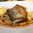 Für mich geht es mit Fisch weiter und zwar einem kapitalen Filet vom Steinbutt, der exzellent gebraten ist und von einem Meeresfrüchteragout in kräftiger Jus begleitet ist. Als weitere Beilage gibt es Tortellini mit einer unglaublich geschmackvollen Füllung aus Garnelen, Steinbutt und Knoblauch. Selten habe ich Pasta gehabt, bei der die Füllung derart charaktervoll war. Ein toller Gang! Bravo!