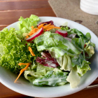 Dazu reichte man einen mit seinem milden Joghurtdressing und landläufigen Zutaten geschmacklich eher unauffälligen, mit seiner bemerkenswerten Frische aber alles wieder wettmachenden Beilagensalat, der angesichts des nun nicht gerade fettarmen Gerichts auch sehr willkommen war.