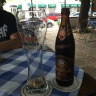 Bei den Weizen hat man jetzt auf Paulaner umgeschwenkt. Dazu gibt es ein Hacker Pschorr Glas. Sie waren schön gekühlt.