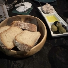 Für jeden 2 Scheiben Baguette,welche eine schöne krosse Kruste hatte und dazu ein sehr leckerer Thunfischdip,etwas Öl und grüne und schwarze Oliven,welche Gott sei Dank entsteint waren. War schon ein guter Auftakt.