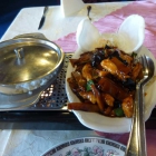 Ich füllte mir entsprechend das Essen auf den Teller. Wie kaum anders zu erwarten war das Fleisch zart, die Bambussprossen und das übrige Gemüse (es waren zusätzlich noch Brokkoli und Möhren enthalten) waren knackig frisch und mit Biss, und es war durchaus schmackhaft gewürzt. Aber natürlich war die übliche „dunkle Sauce“ verwendet worden, bei der man fast mit Sicherheit davon ausgehen kann, dass sie reichlich Glutamat enthält.