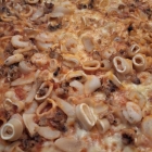 Meine Frau trank ein Paulaner Weizen vom Fass (0,5l EUR 3,80) und später noch ein Bitburger Pils (0,3l EUR 2,30); ich, heute FvD, beschränkte mich auf ein Paulaner Weizen. Zum Essen wurde von meiner Frau eine "Pizza Diavolo" in Normalgröße für EUR 9,90 bestellt. Ich mochte eine Vorspeise; früher war das so gut wie immer eine Zuppa Stracciatella gewesen. Leider steht sie schon lange nicht mehr auf der Karte. Minestrone mag ich nicht, Tomatensuppe noch viel weniger. Also wagte ich es, hier erstmals eine "Zwiebelsuppe" (EUR 5,90) zu bestellen, und als Hauptgericht die "Spaghetti Carbonara" (EUR 8,50) in der Originalversion sprich ohne Sahne. Kam die Suppe, die ganz einwandfrei schmeckte, noch relativ zügig, sollte alles Weitere mit Wartezeiten, wie wir sie im "Italia" zuvor noch nie erlebt hatten, verbunden sein. Was war geschehen ? Ich hatte meine Suppe gerade auf, als es zu regnen begann; ganz kurz als Nieselregen bevor der Himmel seine Schleusen öffnete. Es schüttete wie aus Eimern, aber sowas von! Und prompt setzte eine Art Massenflucht aus dem Biergarten ins Trockene ein; sowohl der vordere Gastraum, in dem wir sassen, füllte sich sehr rasch, ebenso der hintere Saal. Und schon ergab sich für den Service, neben dem Kellner auch eine der Betreiberinnen, ein logistisches Problem. Die Biergartenbestellungen waren natürlich den Nummern der Biergartentische zugeordnet gewesen und nun sassen die Besteller/innen irgendwo im Gastraum bzw. im Saal. Welche Speisen gehören wohin ? Bei uns war das ja eigentlich völlig klar, trotzdem hatten wir unter den Verzögerungen auch zu leiden. Und natürlich hatte sich der Geräuschpegel quasi potenziert; italienische Musik in Maximallautstärke plus notgedrungen laute Gespräche an den Tischen : das war alles andere als schön! Und eine Dreiviertelstunde Wartezeit zwischen meiner Suppe und unseren Hauptgerichten war auch zu lange; vor allem meine Frau wurde langsam sauer und das will schon etwas heissen. Schliesslich kamen aber unsere Gerichte doch an den Tisch; zuerst meine Carbonara, kurz darauf gefolgt von ihrer "Pizza Diavola".