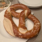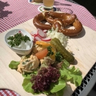 Für mein Gefühl etwas milder abgeschmeckt als ein bayrischer Obatzter, vielleicht ein weniger reifer Camembert, wer weiß. Dazu ein für unsere norddeutsch-münsterländischen Verhältnisse sehr ordentliches Bretzel.