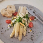 · 1x Spargelsalat in Schnittlauchvinaigrette mit gehacktem Ei und gerösteten Ciabatta für 7,00 €