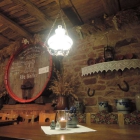 Mein letzter Besuch lag schon ein paar Jahre zurück. Wohlwissend, dass die 6 Tische im Inneren der ehemals als Stallung genutzten Gaststube recht schnell besetzt sind, habe ich vorsorglich reserviert. Günther Becker kennt seine Gäste – auch wenn sie mal ein paar Jährchen durch Abwesenheit glänzen. Diese vertraute, heimelige Atmosphäre ist das große Plus des Lokals. Überall hängen, liegen oder stehen Devotionalien früherer landwirtschaftlicher Nutzung. Einrichtungsgegenstände längst vergangener Zeiten, Steingut und Keramik, ein alter Schubkarren aus Holz, alte Wagenräder und jede Menge Gefäße unterschiedlichster Beschaffenheit verleihen dem von Sandsteinwänden und groben Eichenbalken geprägten Inneren fast schon Museumscharakter. Hier kommt jedoch keine aufgesetzte, falsche Folklore zum Vorschein, sondern ein dekoratives Sammelsurium, das an das einfache Leben früherer Zeiten erinnert und mit dazu beiträgt, dass sich bei den Gästen ein wohliges Gefühl heimatlicher Weinseligkeit einzustellen vermag.