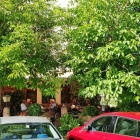 Auf Sonnenschirme kann das Restaurant verzichten. Zwei große Walnussbäume waren die klimafreundlichen Schattenspender.