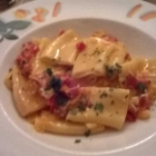 Hausgemachte Nudeln, gefüllt mit Ricotta und Spinat (9,50 €). Schmackhaftes Sößchen drauf. Zufriedenheitsgrad hoch.