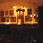 Wie schon erwähnt gemahnt der Gastraum eher an eine Kneipe, was durch die zahlreichen alten oder auf alt gemachten Reklameschilder von Schultheiss Bier, Persil, Overstolz etc. an den Wänden unterstrichen wurde. Zentral im Raum der Tresen aus dunklem Holz mit Barhockern ringsherum, vom Eingang aus rechts gab es nur einen hohen Tisch mit Barhockern sowie eine Art Tischstreifen entlang der Wände, ebenfalls mit Barhockern. Auf der linken Seite des Gastraums standen normale Tische und Armlehnstühle aus dunklem Holz, die Tischplatten blank und nur mit jeweils einer Kerze geschmückt. Darüber hingen antik aussehende Leuchter, die mit sehr schwachen Leuchtmitteln bestückt waren und eine schummrige Atmosphäre erzeugten.