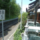 Die Regionallinie 4 hält hier nur nach Bedarf. Wer aussteigen will, muss dem Lokführer vorher Bescheid sagen. Und wer einsteigen will, ist gut beraten, sich deutlich sichtbar mitten auf dem Bahnsteig zu platzieren und zu winken. Alles mit eigenen Augen gesehen während unseres Aufenthalts im Gasthaus!