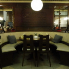 Der Gastraum war, soweit erkennbar, einwandfrei sauber, die Einrichtung insgesamt aber sehr gut konserviert aus den 70er Jahren des vergangenen Jahrhunderts, mit Stühlen und Tischen in Eiche rustikal und entsprechenden Sitzgruppen.