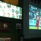Also hinein in die Eckkneipe. Ist eher klein, maximal 6 große Tische mit Hockern. An jeder Wand Fernseher oder Großleinwand. Überall alte Bilder von prominenten Besuchern, alte Mannschaftsfotos und einiges mehr. Sehr interessant. Die Theke erinnert mit einem kleinen Nachbau der Stadionuhr von Bern an 1954.