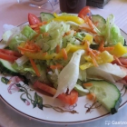Der Salat ist bereits leicht angemacht, es stehen aber auch Öl und Essig parat, und der Kellner stellt noch eine große Pfeffermühle auf den Tisch (die brauche ich erst für die Pizza). Karotten, Paprika, Tomaten, Eisberg, Gurken – kein Mais! – alles frisch und für vier Euronen in Ordnung.