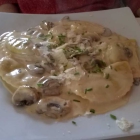 Schätzchen entschied sich für die Triangoli aus der Rubrik: Frische Nudeln. Die Füllung stand zwar in der Karte, aber Schätzchen ist sich nicht mehr sicher, was sie da gelesen hat. Könnte eine Farce aus Steinpilzen und Ricotta gewesen sein. Ein nicht hausgemachtes Produkt, wie unsere Rückfrage bei der Bestellung ergab, aber mit den Zutaten frischer Champignons sowie Parmesanspänen und Sahnesauce handwerklich ergänzt. Optisch schön dargestellt und auch geschmacklich ein Volltreffer. Ihr Teller war jedenfalls leergeputzt. Und die Sättigung war auch gegeben. Dies darf man auch erwarten bei einem Pastagericht für 12,- €.