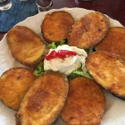 Dieses mal gab es aber vorab einen Auberginen-Zucchini Teller mit ein bisschen Zaziki und Brot. Das Gemüse war frittiert. Die Aubergine war schön weich und saftig, auch die Zucchini war sehr lecker - nur der Preis für diese Portion mit 8 Euro finde ich ein wenig übertrieben. 6 EUro hätten es auch getan!