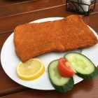 aber sowas von dünn und trocken ohne ende. Geschmacklich , tja – wir hatten Hunger. Das ist etwas was wir nicht brauchen, da muss man nicht essen gehen. Das beste hier war die Zitrone die etwas Geschmack auf das Schnitzel brachte. Die Deko von zwei Gurkenscheiben und einem Stück Tomate, beides Natur pur hoben jetzt das Schnitzel auch nicht nach oben.