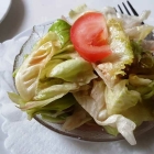 Kurz darauf der Beilagensalat. Optisch sehr schlicht. Was aber überhaupt nicht so aussah: Das cremige Balsamicodressing war richtig gut und der Beilagensalat war überraschend schmackig und tadellos frisch.