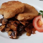 2 saftige, goldgelb gebratene, Schnitzel. Dazu in einer guten Portion Butterschmalz gebratene frische Champignons und Zwiebeln, die brachten richtig viel Aroma auf den Teller.