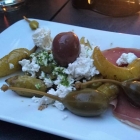 Die herrlich zarten Scheiben des luftgetrocknetes Rohschinkens wurden von etwas Schafskäse, gegrillten Peperoni und Kapernäpfeln flankiert.