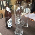 Als wir das Gasthaus betraten sahen wir dass dieser ziemlich gefüllt ist. An einen größeren Tisch wurde von den Gästen der Bedienung mitgeteilt, wir können uns auch bei ihnen dazu setzten. Die Bedienung , wir stellten erst fest das es eine ist als sie uns ansprach, sie trug Alltagskleidung, teilte uns dieses mit und bot uns auch an, wir können auch im Nebenzimmer Platz nehmen. Vorher hat sie uns auch freundlich begrüßt. Das ist uns dann Foto technisch schon lieber. Sie brachte uns hin, teilte mit wir können Platz nehmen wo wir möchten und kam mit den Karten zurück. Es gab eine sofortige Getränkeabfrage , diese kamen dann rasch an den Tisch. Sie stellte zwei Gläser und zwei Flaschen hin und fragte nach, ob wir schon wüssten was wir essen möchten.