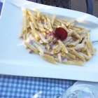 Rigatoni Proschiutto, also mit Schinken und Sahnesoße (6,90).