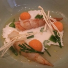 Alle Amuse feine Gaumenschmeichler, wobei die Sardine und das Tatar sehr zu gefallen wussten. Der Fischsalat erschloss sich nicht so ganz, außerdem war das ein Übermaß an Cocktailsauce obenauf. Das Brot stammt von einem örtlichen Bäcker und wusste mit der Butter sehr zu überzeugen. Wir waren zufrieden mit den Grüßen der Küche. Es folgte Gelbschwanzmakrele mit Frischkäse, Karotte, Ingwer, Sorbet und Sesam