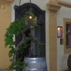 Tische, Bänke und Stühle aus massivem Holz, romantische Kerzen auf den Tischen und in kleinen Fenstern, die zum Nebenraum führen, geben eine angenehme Atmosphäre und die groben Wände, mit mediterranen Farben bepinselt, ergänzen die urigen Eindrücke, die jeder Gast in sich aufnimmt. Im unteren Bereich ist zudem ein offenes Kaminfeuer.