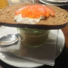 Die kam im Weckglas, auf dem Deckel eine Scheibe Brot mit Butter und Tomate. Hätte es so zwar nicht gebraucht, lecker war das dennoch.