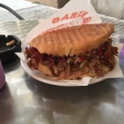 Das Brot vom Döner war sehr schön knusprig und schmeckte. Die Füllung bestand aus Blaukraut, Eisbergsalat, Tomaten, Zwiebeln . Es war alles klein geschnitten. Eine , wir sagen mal Zaziki Soße gab es dazu, die allerdings geschmacklich sehr unterging. Das nachgefragte scharf bestand aus etwas Chilipulver. Was wir beim Essen erst bemerkt hatten und überlesen hatten, der Döner besteht hier aus Putenfleisch. Das war hier sehr geschmackslos, das würzen fehlte uns auch und die knusprigen Stückchen mit dabei. Es wurde ein normaler Döner zum Preis von 4,50 € gewählt und das unsere war er nicht, es fehlte uns einfach der Geschmack und das saftige.