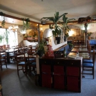 Im Innenbereich findet man einen großzügigen Gastraum mit typischen Raumteilern, vielen Pflanzen und etwas Dekoschnickschnack. Platz gibt es an den Tischen und dazwischen ausreichend. Beim Betreten war sofort ein leicht muffiger Geruch zu vernehmen. Auf altes Gemäuer kann das eigentlich nicht zurückzuführen sein, denn der Raum ist angebaut worden.