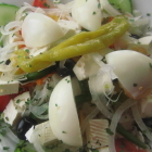 Das Restaurant/Cafe ist schon ziemlich in die Jahre gekommen. Wir saßen auf der Terrasse, und hatten Glück, dass wir einen der wenigen Tische mit geflochtenen Stühlen und Sitzmatte bekamen. Der Rest der Terrasse ist mit weißen Kunststoffstapelstühlen bestückt und kleinen Tischchen. Wohlfühlatmosphäre kommt da nicht auf. Auch im inneren der Laden eher etwas schmuddelig und alt. Hier würde mal eine grundlegende Renovierung Not tun.