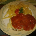 Wir bestellten uns als Vorsuppen den „Eierflaum in kräftigem Boullion“ für 2,50 € sowie die „urige Brotsuppe mit gerösteten Zwiebeln“ für 3,00 €. Als Hauptspeise wählten wir einmal die Schweinelendchen vom Grill mit Pommes, Kräuterbutter und Salat a´ 10,00 €, einmal das Cordon Blue mit Pommes und Salat für ebenfalls 10,00 € und zweimal das Italienische Käseschnitzel mit Zigeunersoße, Pommes und Salat a´10,50 €. Die Getränke waren Ratzfatz am Tisch, die Suppen dauerten auch nur knappe 10 Minuten bis sie gereicht wurden. Durch unseren direkten Blick in die Küche konnten wir sehen das das Schnitzelfleisch frisch aus dem Kühlschrank geholt wurde und alsbald konnten wir dann auch das klopfen des Fleisches aus der Küche vernehmen. Wir waren uns also gewiss, dass unsere Speisen frisch hergerichtet werden, und nicht aus Tiefkühl-und Fertigware besteht. Nach einer knappen halben Stunde kamen in ca. 1-2 Minutenabständen die Hauptspeisen an den Tisch.