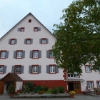 Das Haus sieht von außen sehr einladend aus, in weiß und rot mit grauen Fensterläden und einer großen Freitreppe von je elf Stufen, die den Besuch für Gehbehinderte sicherlich nicht leicht macht.