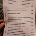 Nachdem wir Platz genommen hatten, wurde uns die ausgiebige Speisekarte gereicht, welche als einlaminierte A4 Blätter noch ein Überbleibsel aus den strengen Coronazeiten ist. Geboten werden hier typisch deutsche Küche aber wie der Gasthausname schon verrät auch bayrische Schmankerl und Brotzeiten. Auf einer Schiefertafel in der Gaststube wird auch frisches Pferdefilet angeboten.