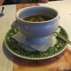 Die Eierflockensuppe war jetzt nicht unser Fall. Die Brühe mit sehr künstlichen Geschmack nach fertiger Brühe und sehr nach dem kleinen braunen, flüssigen Würzfläschen schmeckend. Die Einlage war sehr fein und spärlich vorhanden