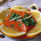 Das Essen: Anlässlich des indischen Lichterfestes Divali (21.-26.10) erhalten die Gäste während dieser Zeit eine Gratisvorspeise. Die heutige Vorspeise bestand aus Kichererbsen in einer Sosse von frischem Ingwer, Tomaten, Pepperoni und gehackter Petersilie mit einem ausgebackenen Dreieck aus Kartoffeln, quasi "Rievkooche auf indisch". Bei Aufnahme der Bestellung fragt Herr Dhingra grundsätzlich nach dem gewünschten Schärfegrad der jeweiligen Bestellung (Alternativen sind mässig scharf bzw. nicht scharf, mittelscharf und scharf). Da wir uns bei der Vorspeise und der Hauotspeise für mittelscharf entschieden hatten, hatte die Vorspeise schon kräftig Biss und schmeckte ausgesprochen gut. Als Hauptspeise hatten wir diesmal "Kashmiri Chicken" (Hähnchenbrust in würziger Sosse mit viel Chiliwumms) bzw. "Shahi Korma" (Lammfleisch in einer Käsesahnesosse; bei dem verwendeten Käse handelte es sich um den Indienreisenden sicherlich bekannten Paneer). Als Beilage zu beiden Gerichten wurde indischer Reis und selbstgebackenes Fladenbrot gereicht. Getrunken haben wir Pils, Mineralwasser und Mangosaft. Die Gerichte waren sehr gut abgeschmeckt, das Huhn wie auch das Lamm waren sehr gut gegart und zart, die Sossen waren wie bei fast allen indischen Gerichten sehr sämig und passten absolut. Im "Maharaja" wird richtig gut und authentisch indisch gekocht, die Speisekarte ist reichhaltig (auch Vegetarier haben Auswahlmnöglichkeiten in Hülle und Fülle) und das Preis-/Leistungsverhältnis ist beispielgebend sprich ausserordentlich gut. Kleiner Tip: Gäste mit etwas empfindlicherem Gaumen bzw. Magen sollten den Schärfegrad "scharf" tunlichst meiden; in der indischen (bzw. auch der indonesischen oder der thailändischen) Küche ist "scharf" gleichbedeutend mit "höllisch scharf" und das ist dann nicht nur beim Essen sondern auch später noch (das will ich hier nicht näher ausführen) zu spüren.