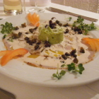 Service:Wie bereits erwähnt gibt es die "gute Seele des Hauses" mit ihrem manchmal etwas eigenartigen Sinn für Humor nicht mehr, auch die etwas "dünnhäutige" hochblonde Dame (die Tochter?) ist nicht mehr (jedenfalls heute nicht) zu sehen. Dafür eine etwas kompakte junge Frau, die alles gut im Griff hat. Gestaunt habe ich darüber wie sie ihre Anfangsansprache am Tisch verinnerlicht hat; bis auf den letzte Buchstaben haargenau lief der Vortrag an jedem Tisch wie zuvor bei mir darüber, was es ausser der Karte an Tagesempfehlungen (Muscheln in Weissweinsoße als Vorspeise oder als Hauptgericht und frische Pfifferlinge mit Tagliatelle bzw. in Kombination mit jeglichem auf der Karte stehenden Fleisch- bzw, Fischgericht) und was leider "aus" wäre (Duett von gebackenerEntenstopfleber ud Entencarpaccio bzw. Trio vom Ziegenkäse) ab. Flott, mit Übersicht, freundlich (sie konnte mir trotz zahlreicher Reservierungen noch einen kleinen Tisch zuweisen; er war weder neben den Toiletten noch direkt am Eingang). Vier Sterne.