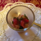 Der Küchengruß kam schwungvoll serviert auf den Tisch, ein Schnapsglas