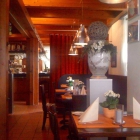 "Tante Lucie" begrüßt uns in personam einer jungen Dame freundlich. Sie führt uns im Gastraum des Erdgeschosses, bistroartiger Stil, an unseren reservierten Tisch. Der ist geschmackvoll eingedeckt, "Flammende Kätchen" begrüßen uns floral. Auf mit dunkelrotem Polster überzogenen Bänken und Stühlen nehmen wir Platz.