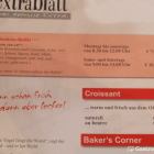 In der Karte standen mehrere Frühstücke verzeichnet. Getränke sollten jeweils extra bestellt werden. Am Sonntag kosten diese Gerichte mehr als in der Woche.